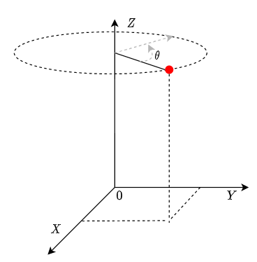 원점을 기준으로 점 $(x,y,z)$을 $Z$축으로 $\theta$만큼 회전시키는 수식은 다음과 같이 행렬로 표현할 수 있습니다.