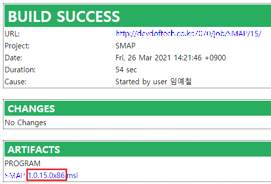환경 변수 파일로 갱신한 환경 변수 BUILD_NAME이 파일 이름으로 들어가 있는걸 알수 있습니다.