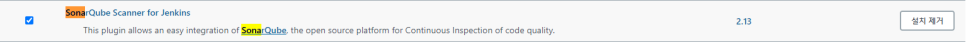 Jenkins와 연동하기 위해서 SonarQube Scanner for Jenkins 플러그인을 설치합니다.