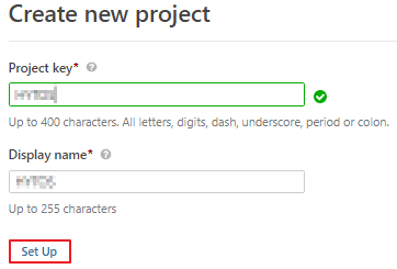 Project key로 프로젝트 이름을 입력합니다. 그리고 Set Up 버튼을 클릭합니다.