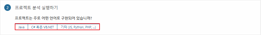 프로젝트에서 사용하는 주요 언어를 선택합니다.