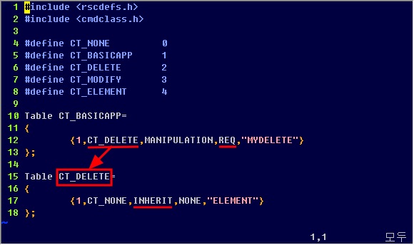 CT_DELETE라는 Table은 CT_BASICAPP에서 상속(INHERIT)을 받고 더 이상의 하위 Command Table은 필요로 하지 않습니다.